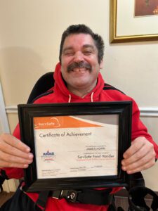 One person we support recently completed his Food Handler certification, supporting his goal of learning how to cook in the food industry.